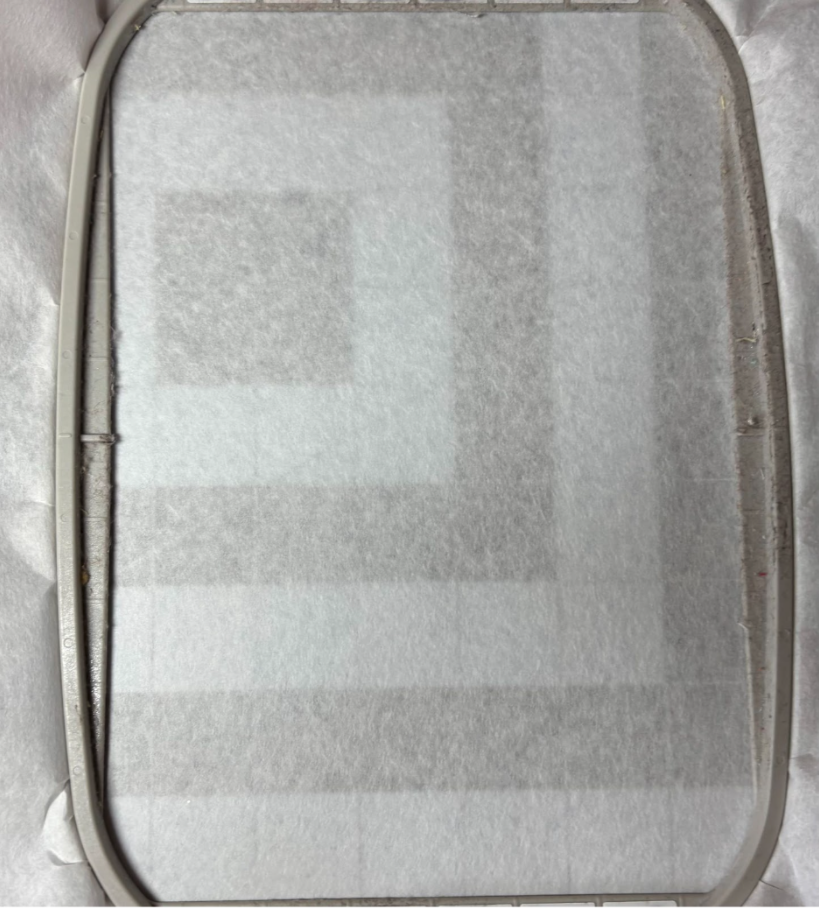 Hoop the tearEZ Tear-Away Stabilizer in a 5x7 hoop and take it to the machine.