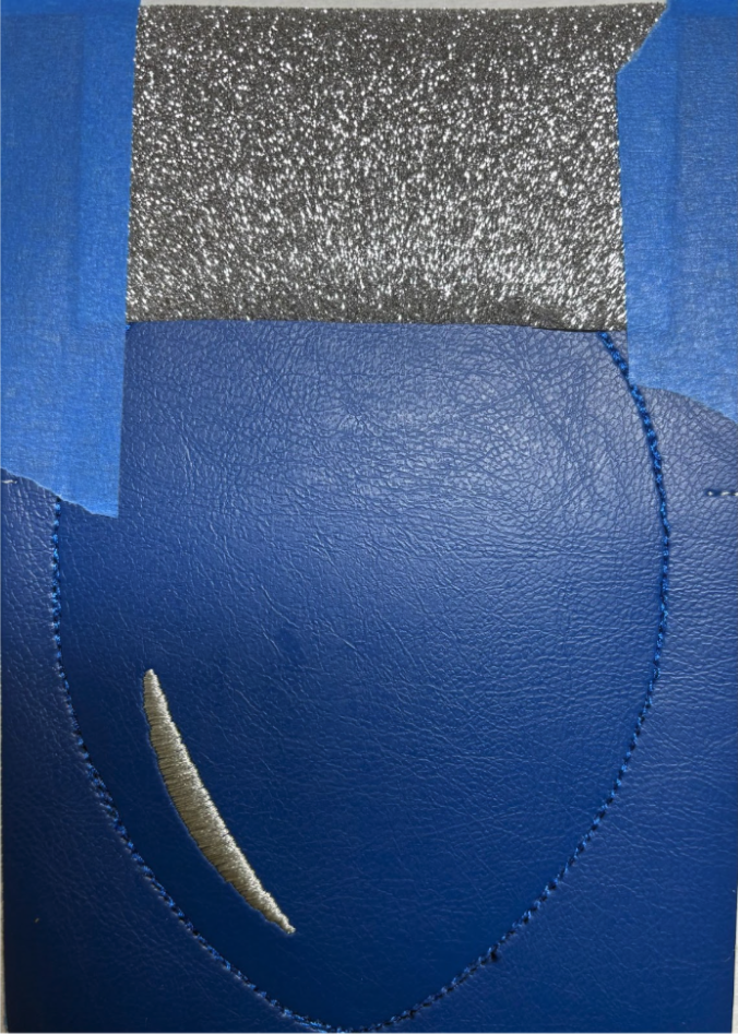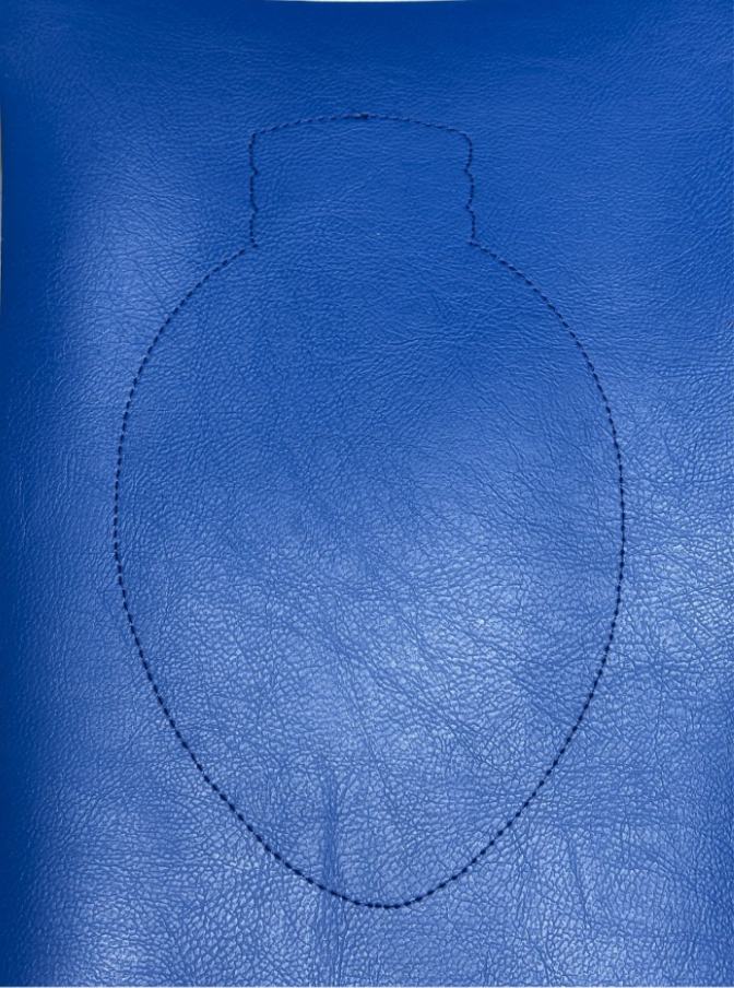 Align the 5.5” x 5.5” square piece of vinyl with the two stitch lines. Tape in place. Tape is our BFF here—use more than you think you need. Trust me, nothing ruins the mood like vinyl shifting mid-stitch. Stitch the pocket to the ornament.