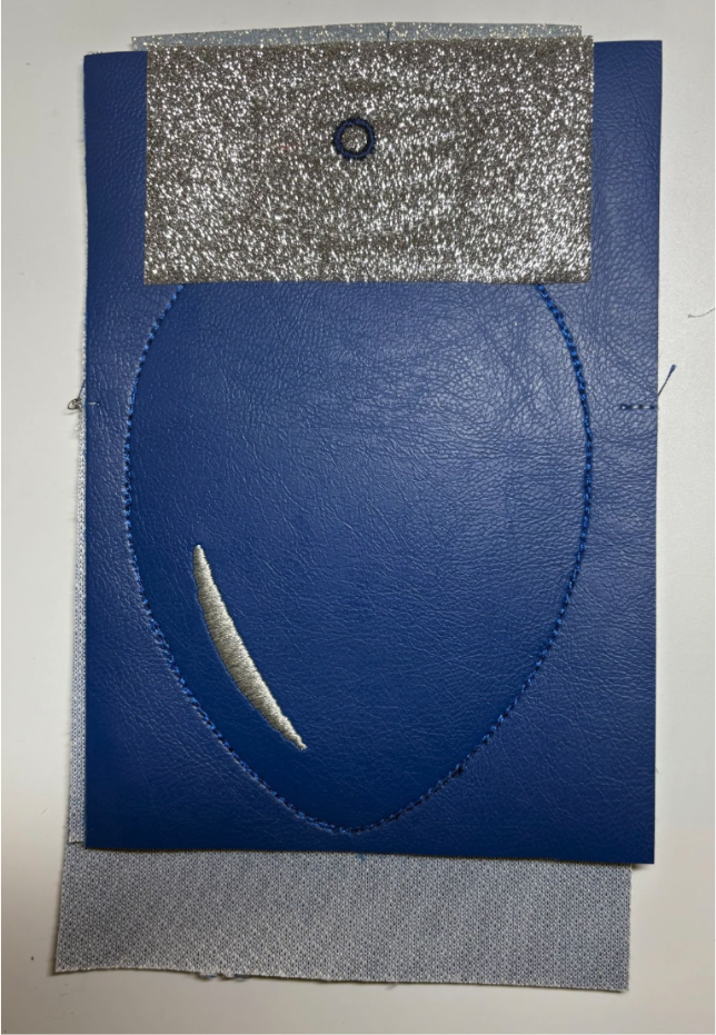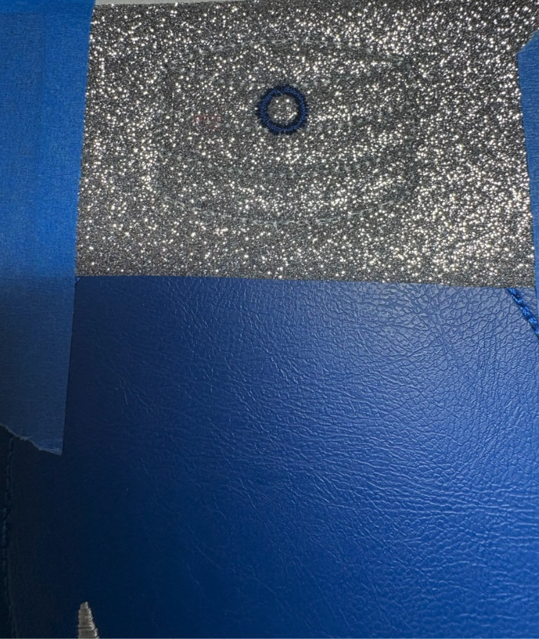 If you desire, you can also tape a piece to the back. Before stitching, change the top and bobbin threads to match the vinyl applique.