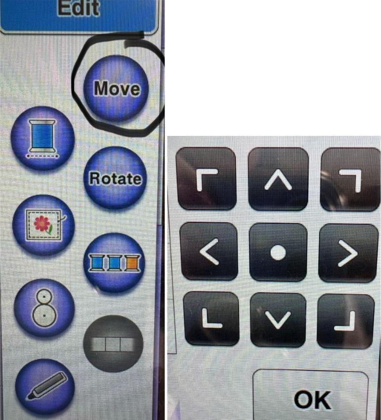 With the stitch forward key, advance the design to the beginning of your letters. My machine is a Brother Stelaire; your screen may look different.