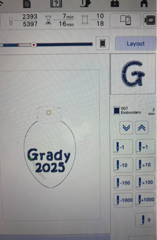 Once your letters are lined up, the next step is to run a quick test stitch to see your design come to life and ensure everything looks right.