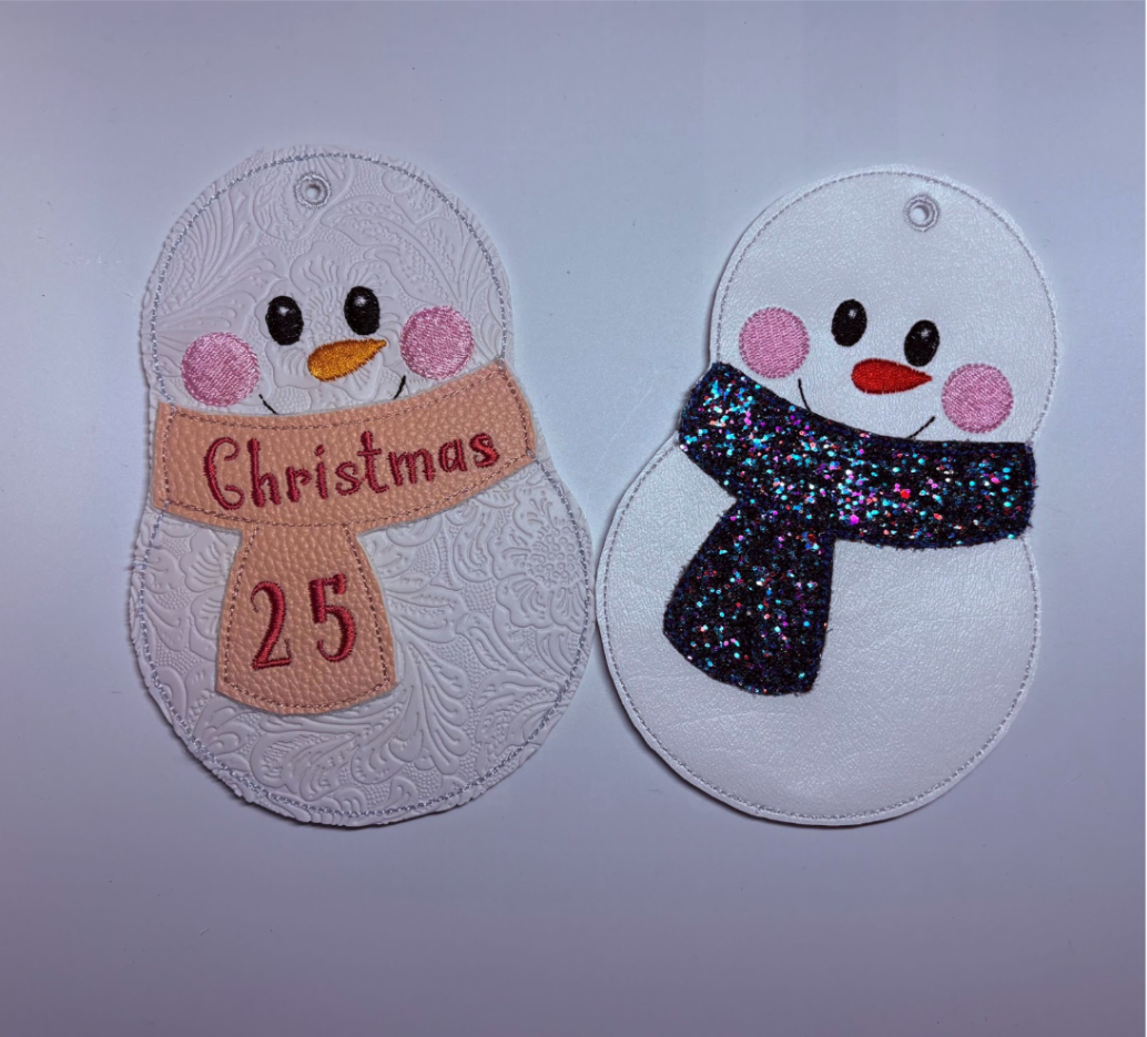 Try personalizing the scarf on the front of this snowman, and the pocket on the back of the snowman. I did use software for the scarf.