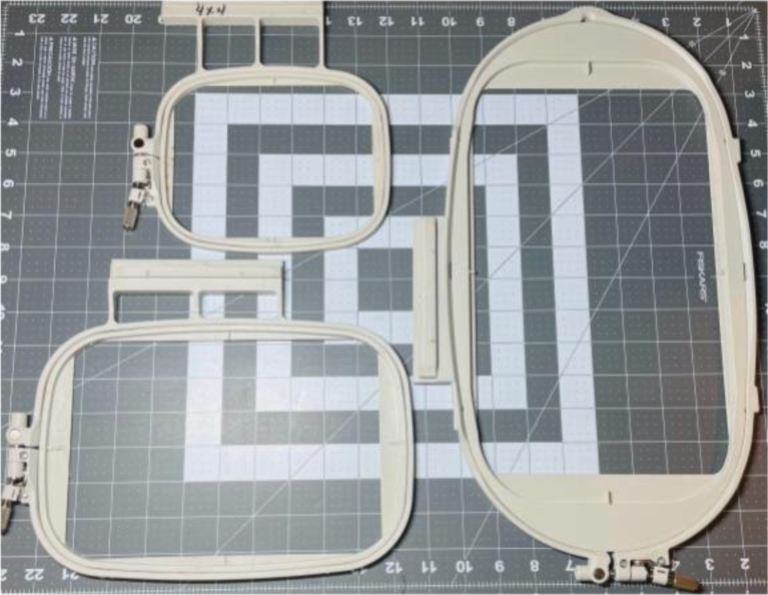 Embroidery machines have a variety of hoop sizes. Your exact machine model will determine the hoop sizes available to you. These can range from 4” x 4” all the way up to 11” x 14” and possibly even larger. New machines come out annually and the hoop sizes continually get larger. But for the most part, 4” x 4”, 5” x 7”, and 6” x 10” are the most common sizes. When purchasing a design, you will want to check hoop-size compatibility.
