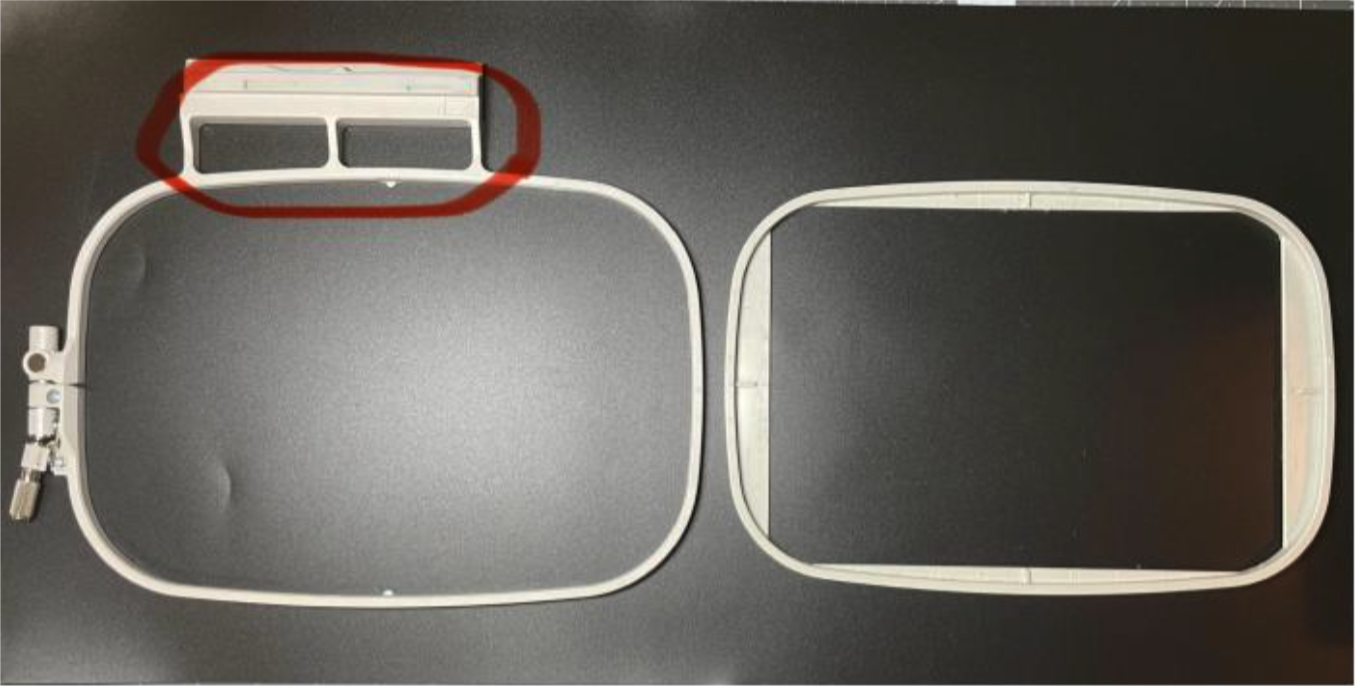 These hoops provide the strongest tension for the stabilizer and fabric. They have two rings: an inner ring, which is a fixed size, and an adjustable outer ring. This allows you to tighten the hoop more or less, depending on the thickness of your fabric and stabilizer. The outer ring has an attachment that slides onto your machine. This allows the machine to read the size of the hoop. These are the only hoops you will need to get started.
