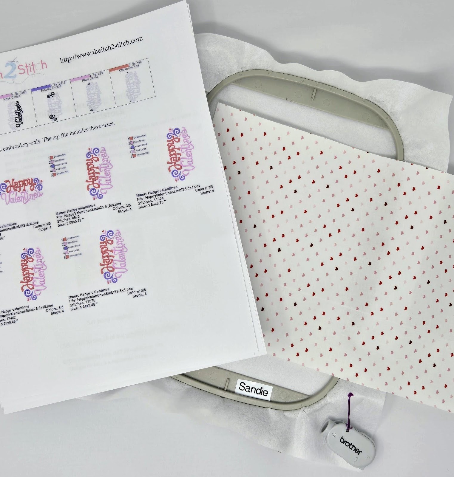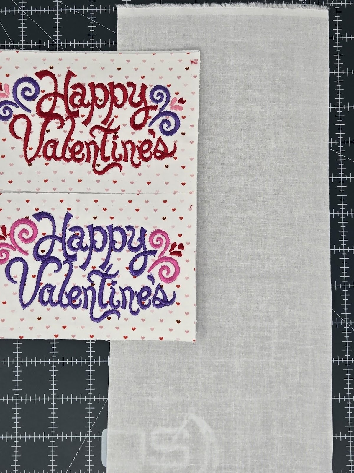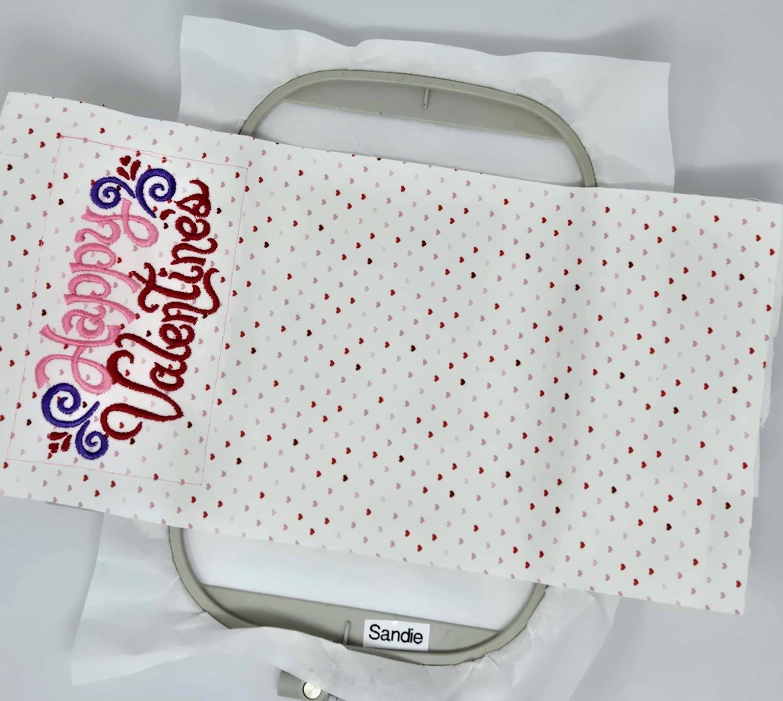 I noticed I needed more stabilization as the first design was stitching out, so for all subsequent designs I slid a scrap of tearEZ under my hoop. These were pieces left over from other projects that I saved beside my machine.
