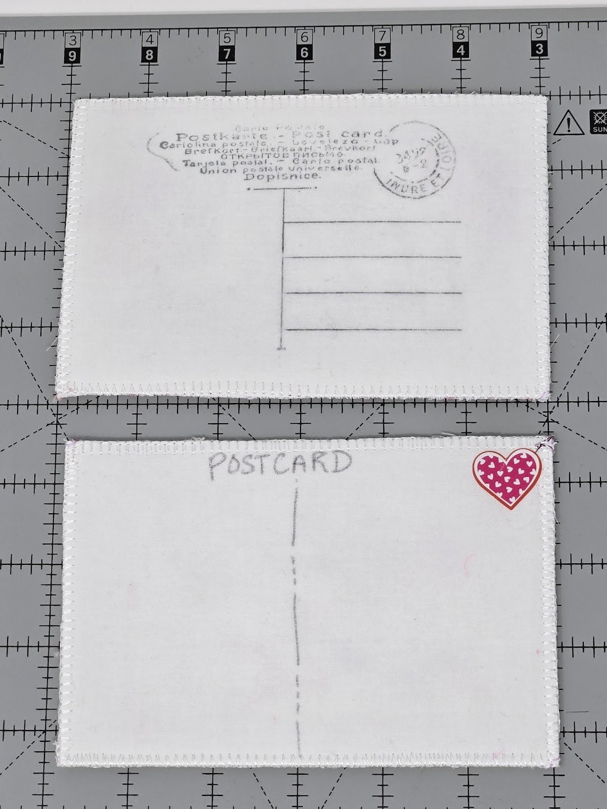 *NOTE: I know some people use heavy cardstock in their fabric postcards, but I really like the stiffness of the Pellon 72F.