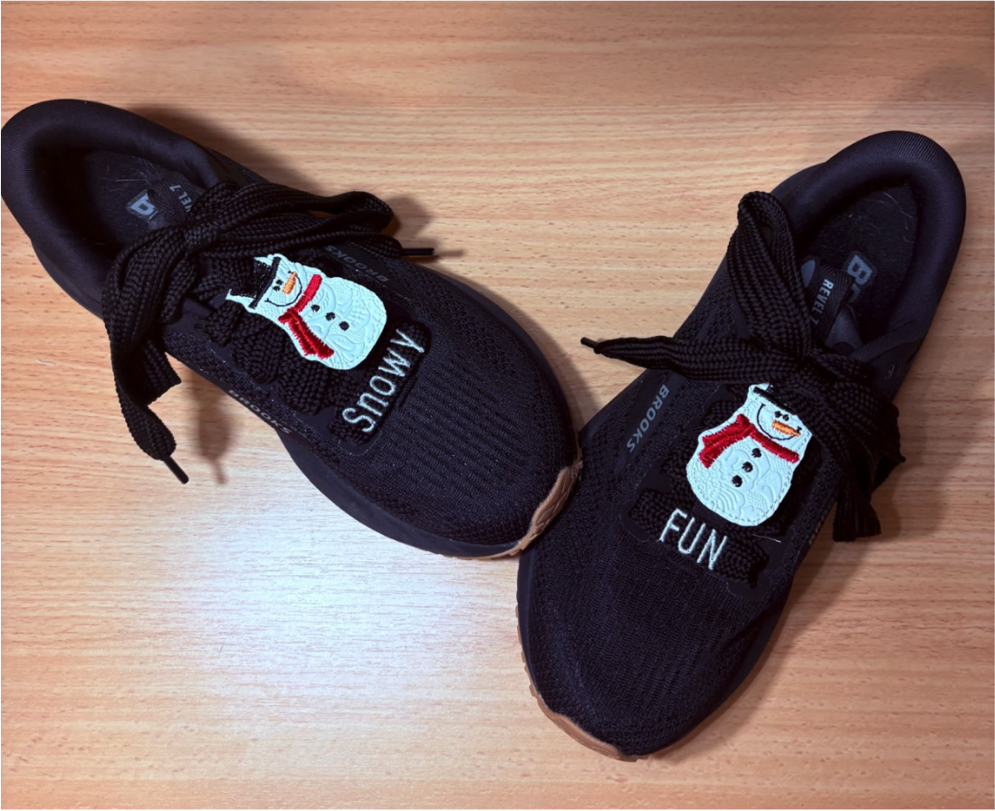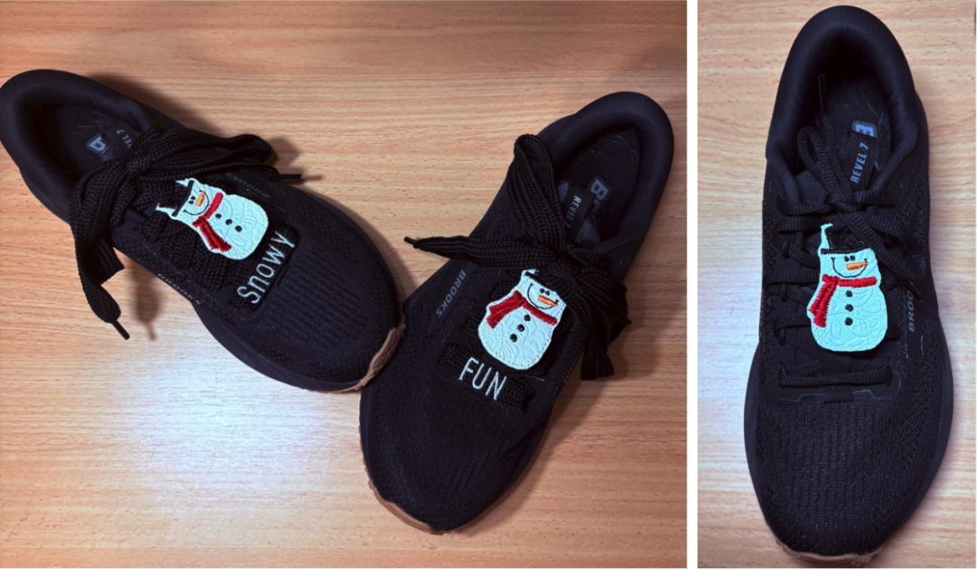 A charm with plain laces looks super cute too! I imagine it would be perfect on a pair of snow boots—if only I got more snow where I live. Still, I can’t resist adding a snowman design because I just love them!