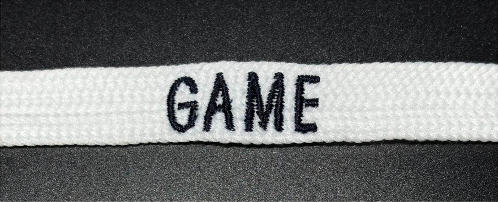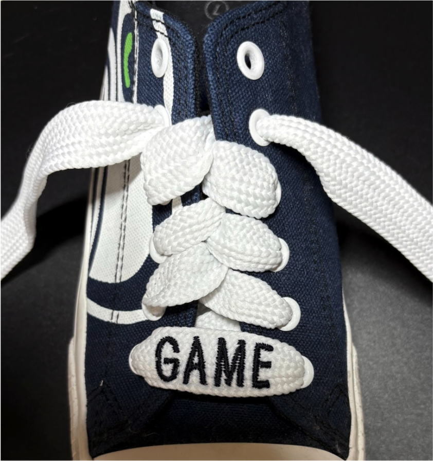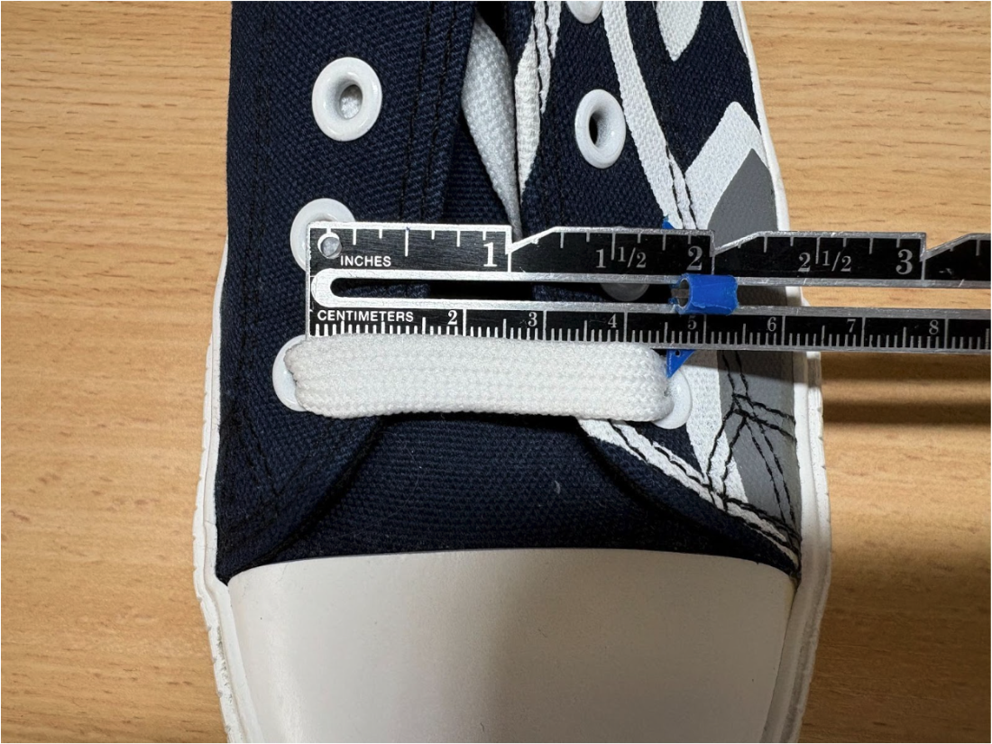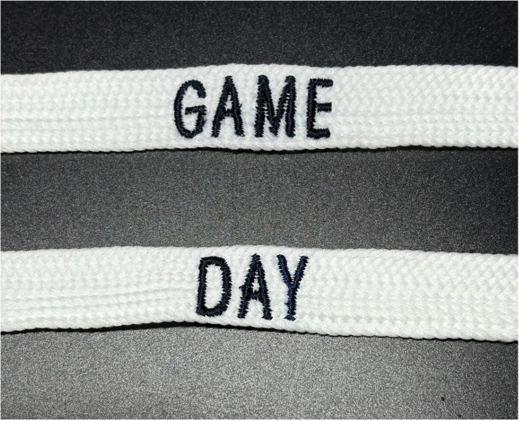 Lace up your shoe and measure the open space at the bottom. Mine measured 2”, so I planned for words that would fit within that area, usually 4–5 letters per word works best. With your measurement in mind, think of a fun phrase for your laces.
