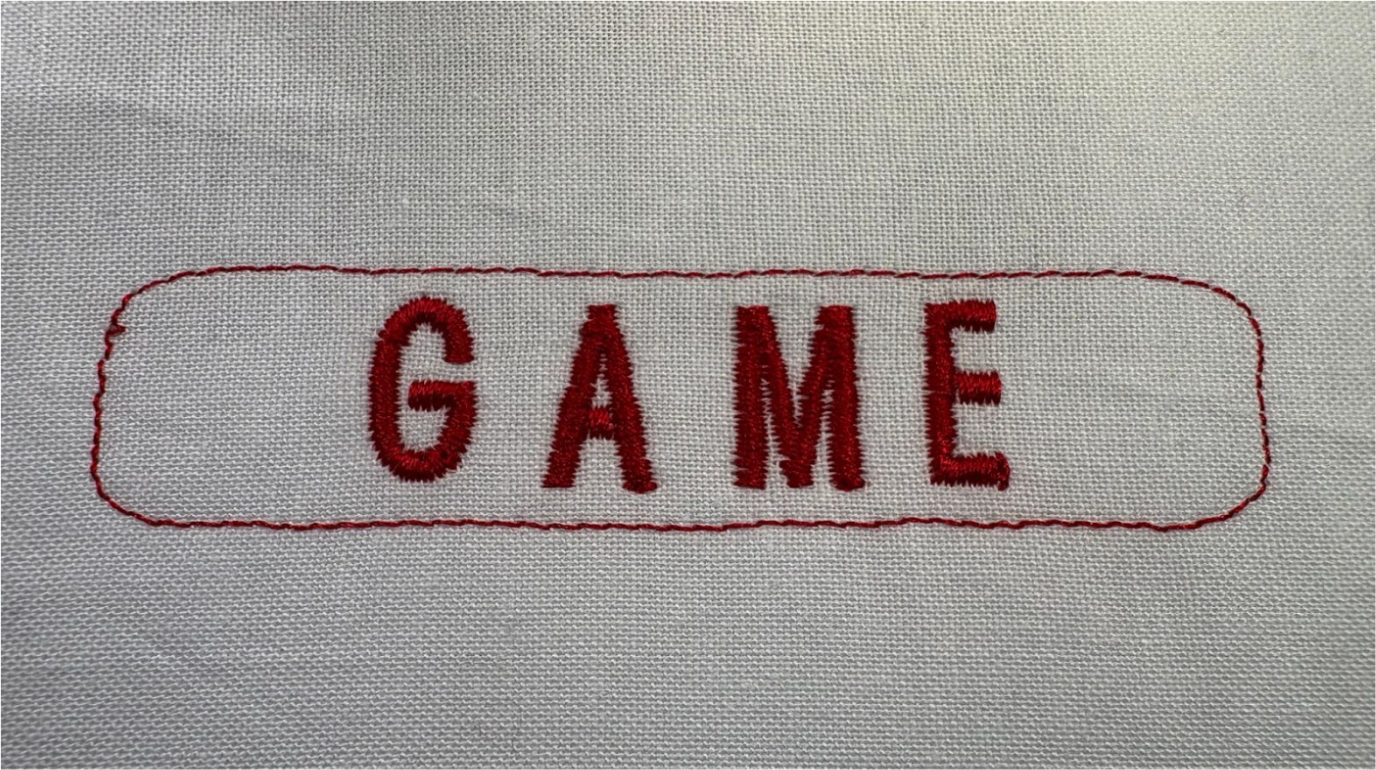 Choose your font and add ½” letters to spell your first word. Use your machine’s grid to line up the word inside the rectangle. You can also align the letters first, then add the rectangle if that’s easier.