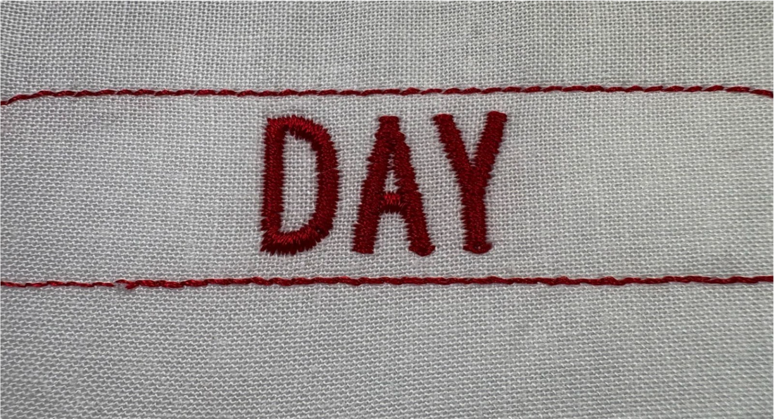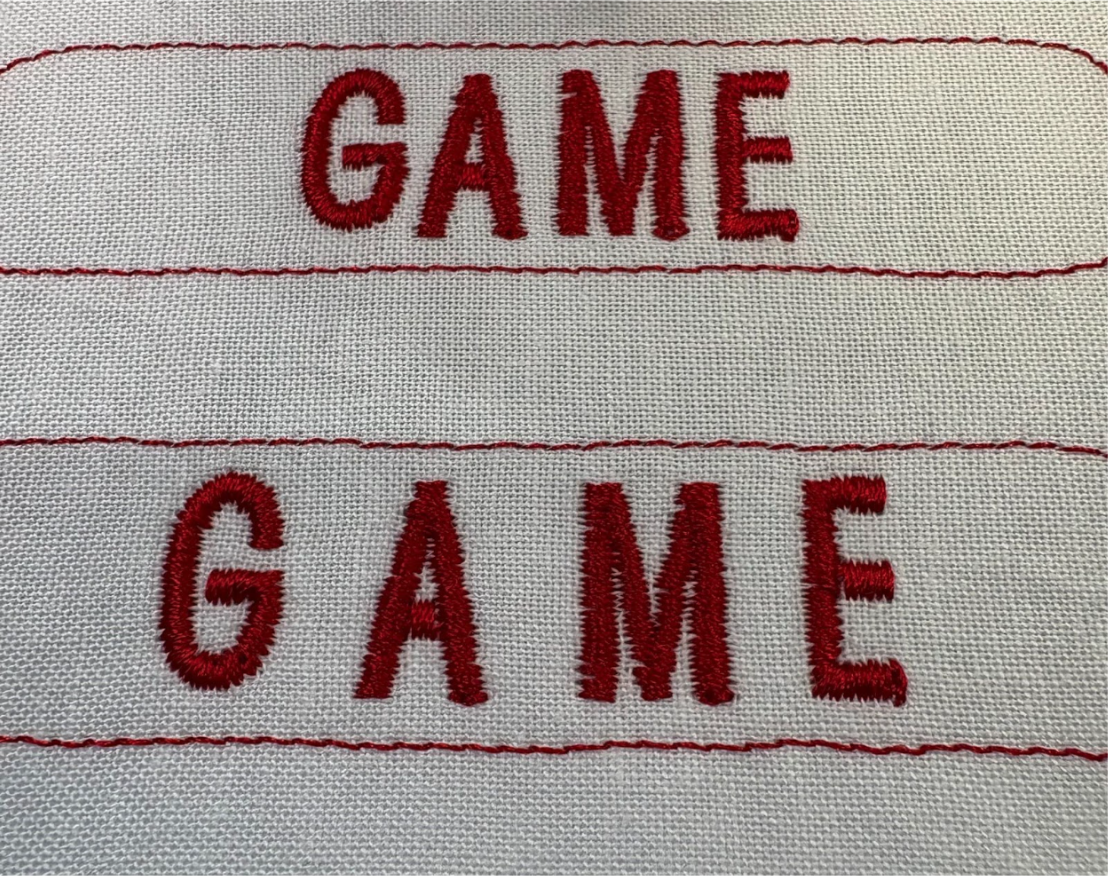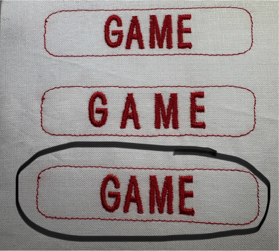 Before you start stitching, check that your letters are spaced well and even at the bottom. To check, use scrap stabilizer and a piece of scrap material. Load them to your hoop, and stitch out your letters.
