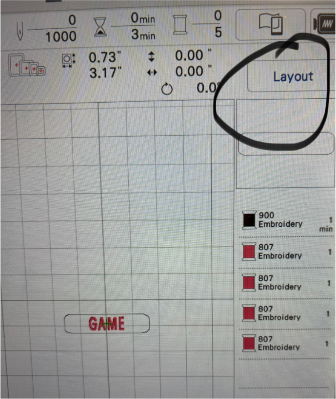 Using the Layout key, move your design to the top of your hoop embroidery area. This will allow you to stitch out both laces with one hooping. My machine is a Brother Stelaire; your screen may look different. If needed, refer to your machine manual.