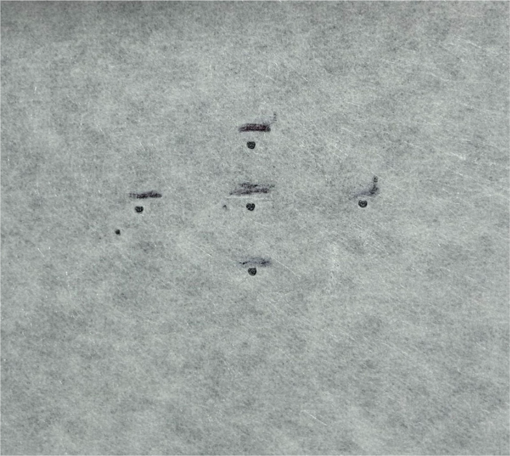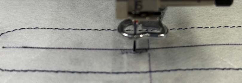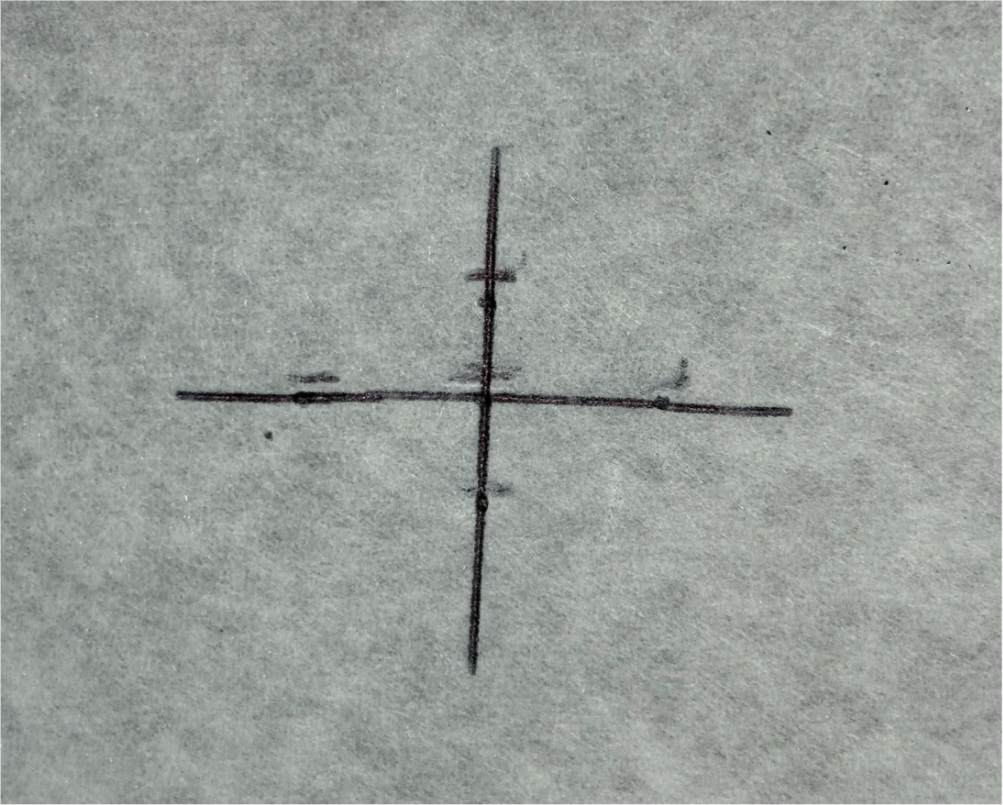 If you are not comfortable with the rectangle approach, you can use the design placement keys to mark the center, top, and bottom as well as the left and right of the design. With the needle down, mark these positions onto your stabilizer.