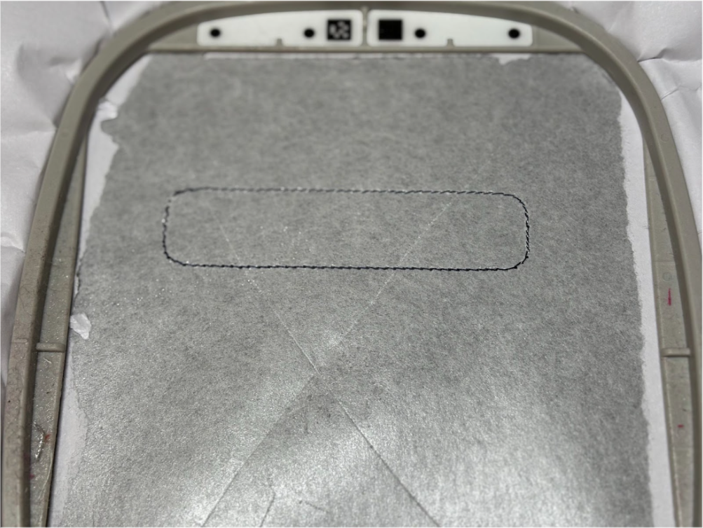 If using the rectangle, take the hoop to your machine and stitch only the rectangle onto your stabilizer.