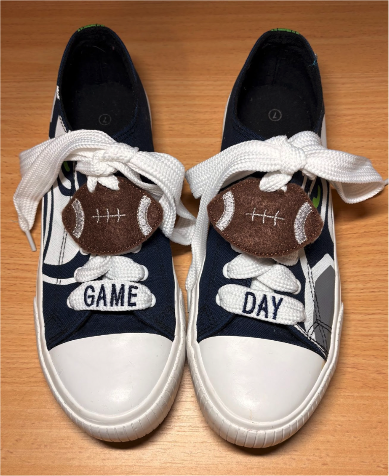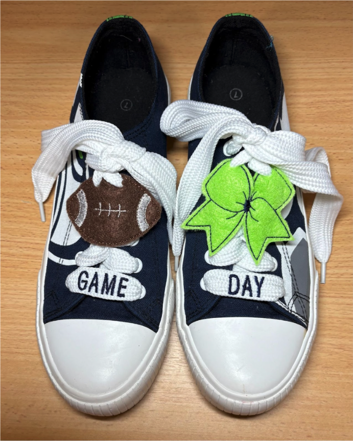 The possibilities are endless—mix, match, and personalize your laces and charms to fit any style or celebration! These charms were created with felt using Football Embellishment Kit Embroidery Set, and Cheer Embellishment Kit Embroidery Set.