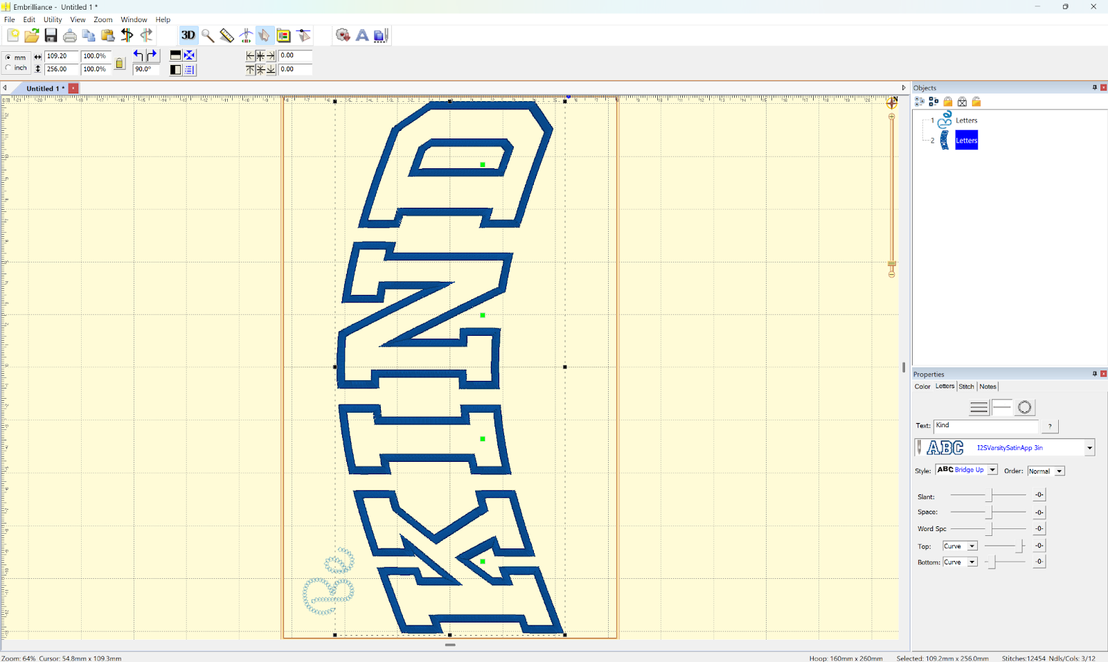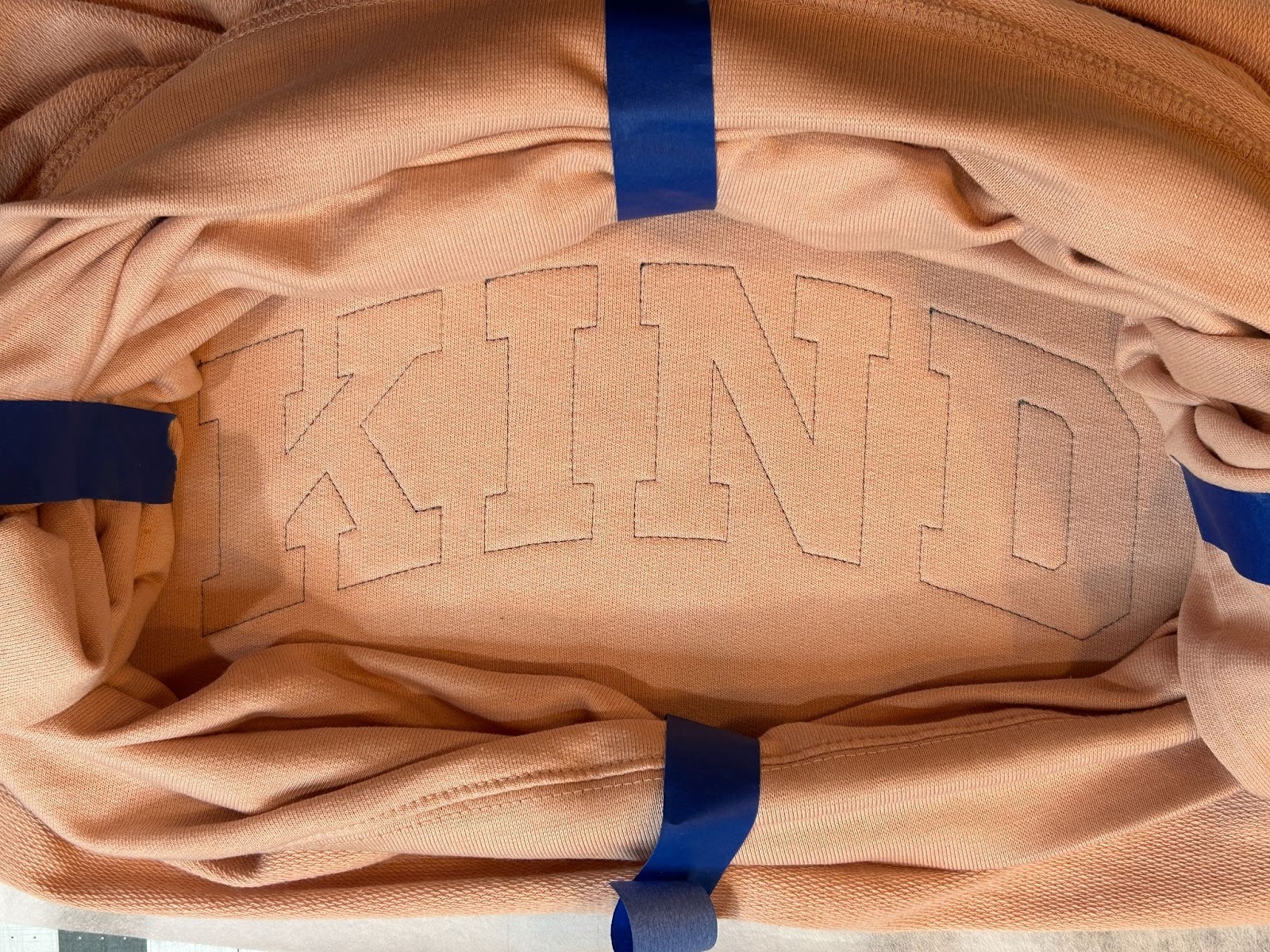 I played around with the letters in “kind” and decided I liked them to arch a bit. Check out our post on using Embrilliance for your text projects. When you’re happy with how it looks, save it and transfer it to your machine.