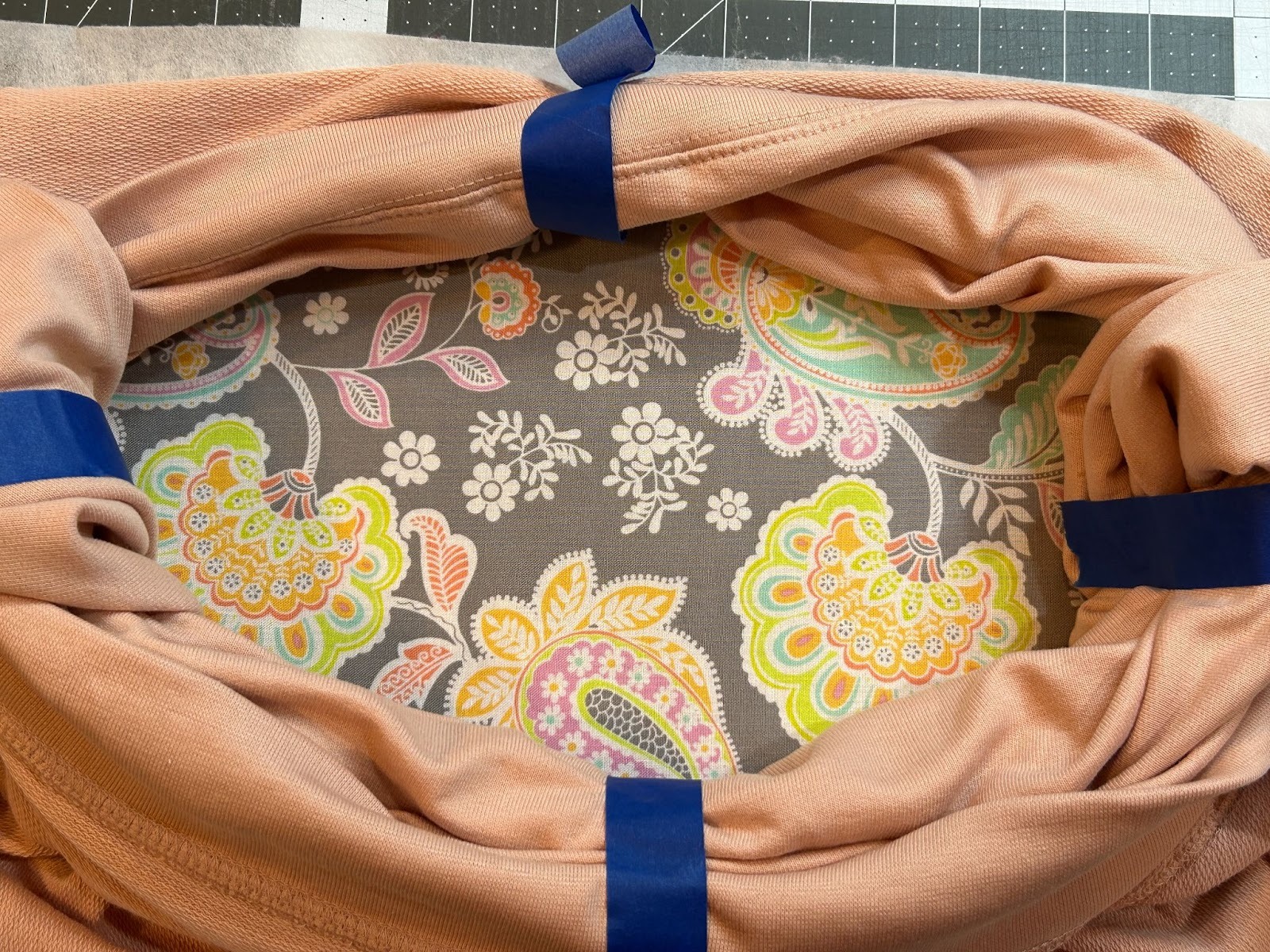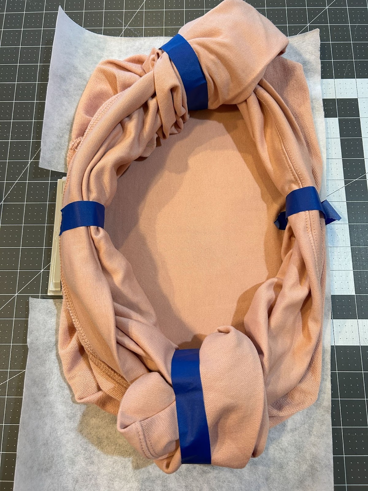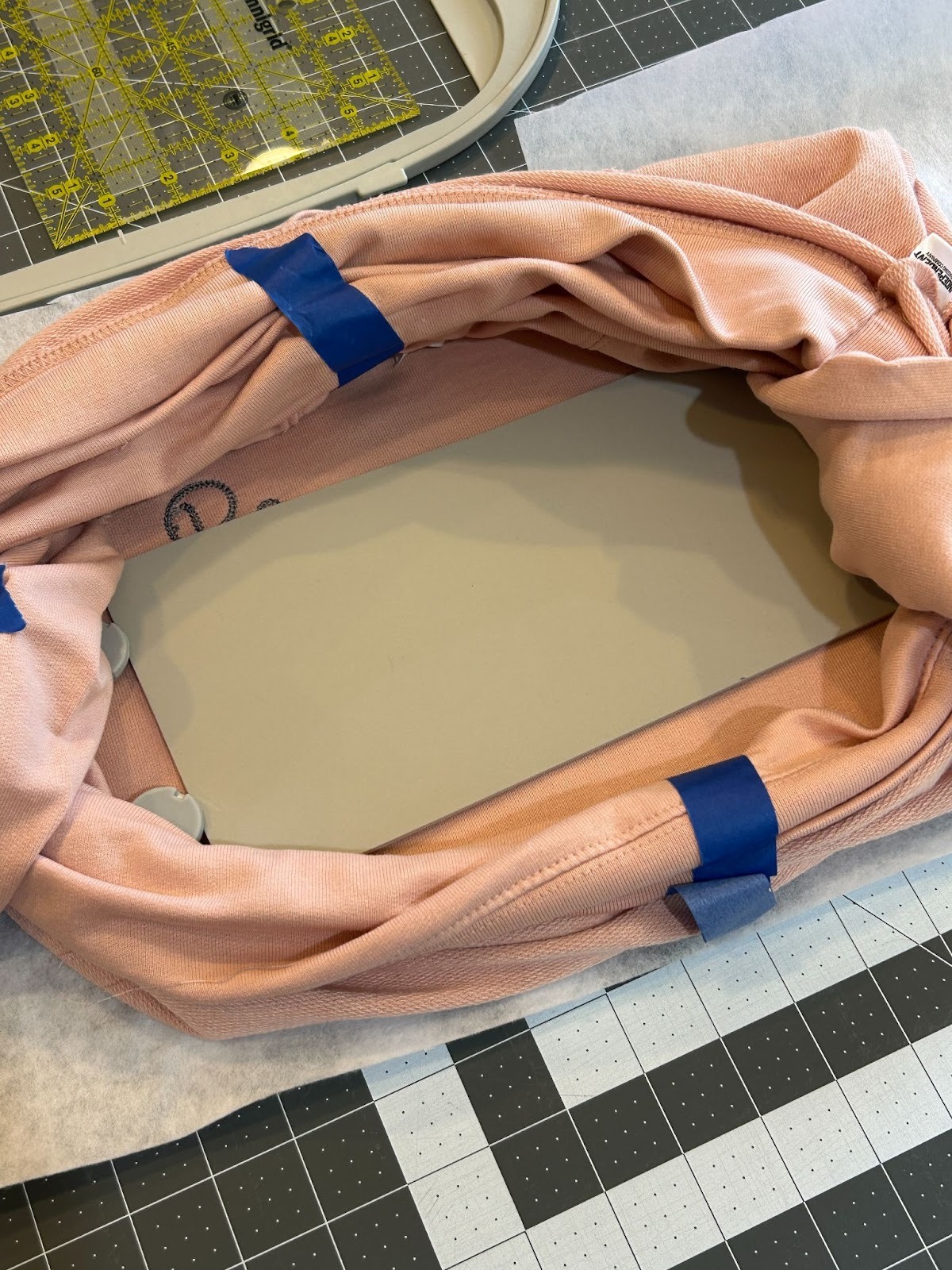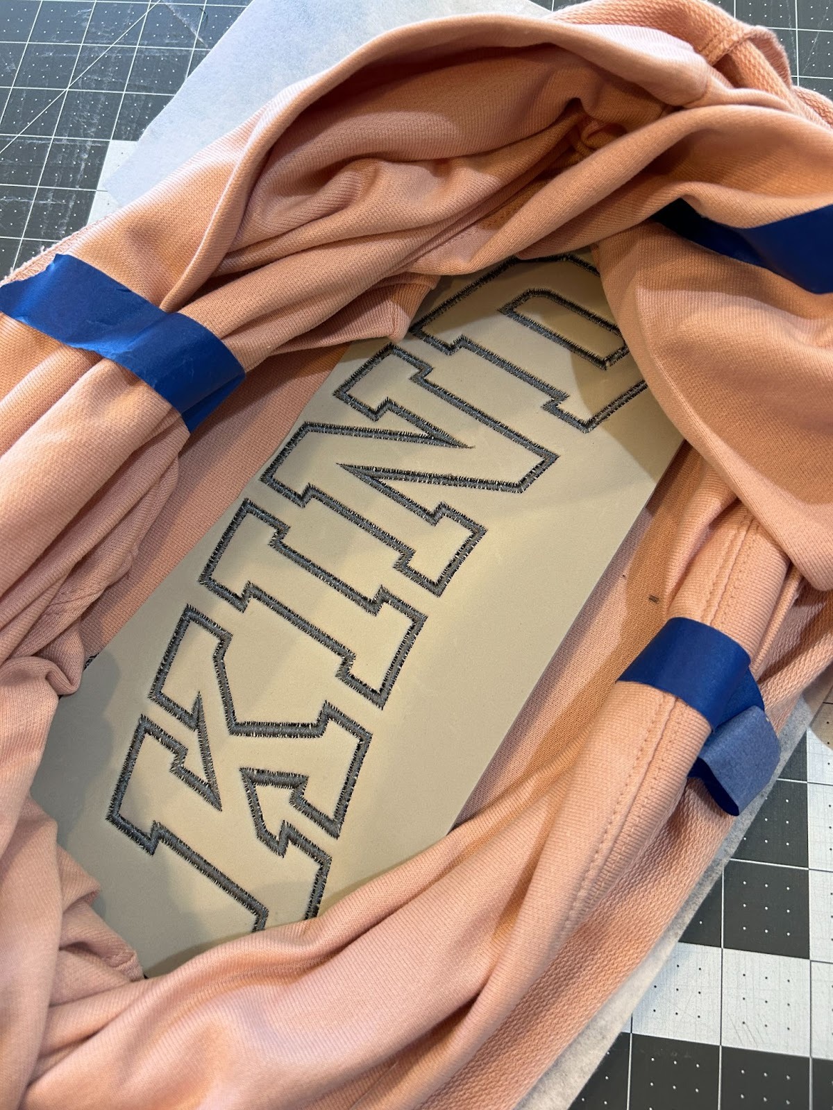 Hoop the stabilizer and fabric for your project. I always get excited to do shirts and then when I go to hoop them I realize how much I dislike that part! For me, it takes a lot of centering and painters tape to make it work. I used my magnetic hoop and cut-away stabilizer for this project.