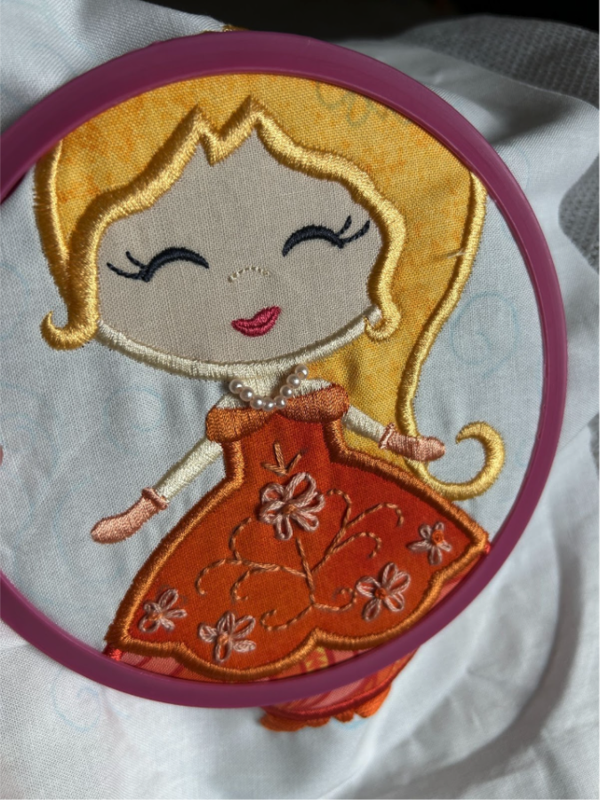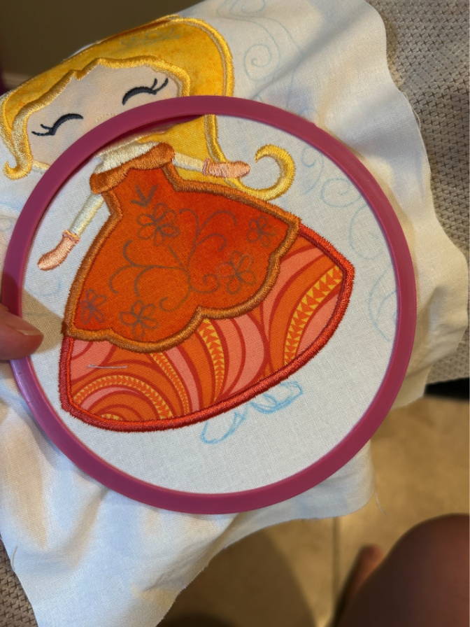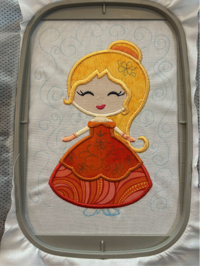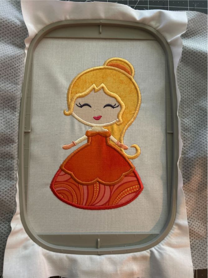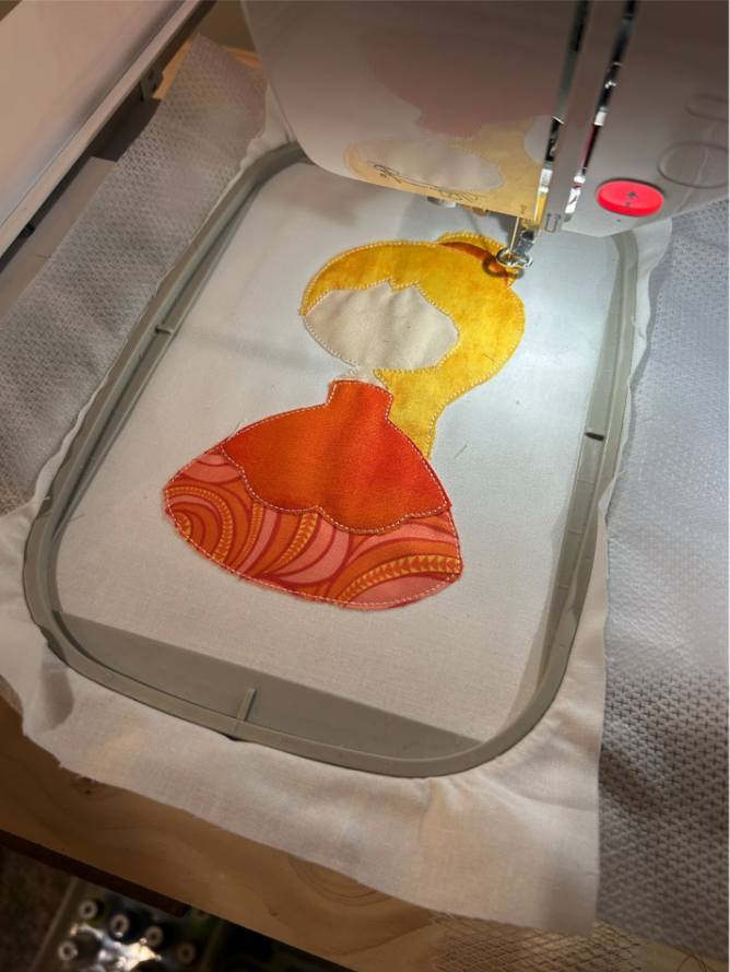 If you’re comfortable using your machine embroidery hoop you can stitch right in it. Mine was a little bit unwieldy, so I changed to a smaller one that I felt a bit more comfortable with.