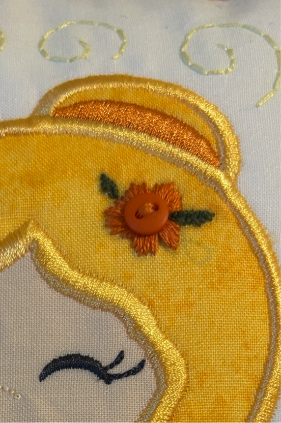 I incorporated some lazy daisy stitches for leaves and flower petals.