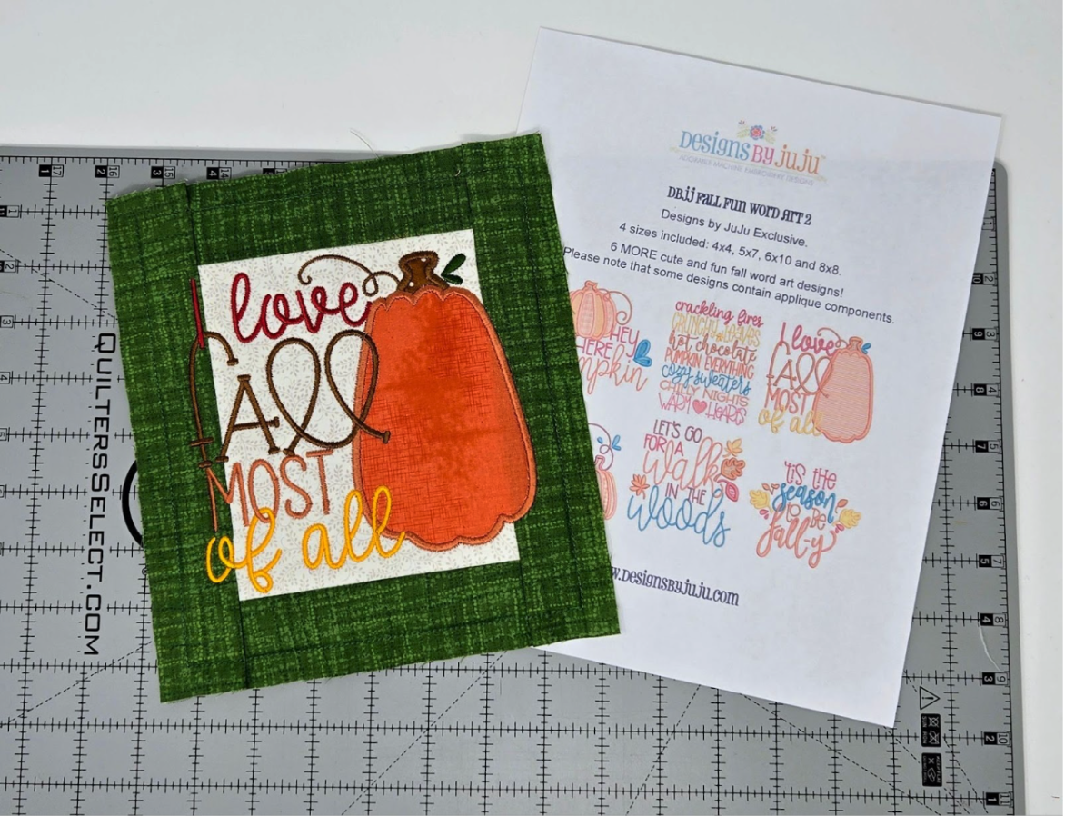 Please be sure to share your projects in the Designs by JuJu Embroidery Blessings Facebook Group, or use the hashtag #designsbyjuju anywhere on social media. We all love to see what you create!