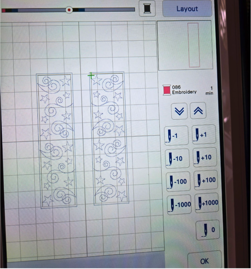 First I loaded my two design sizes, spacing them about an inch apart using the Move arrows on my machine.