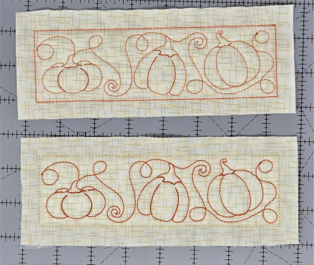 This is a comparison of a unit stitched once, and another with the pumpkins stitched twice. Can you see the difference?