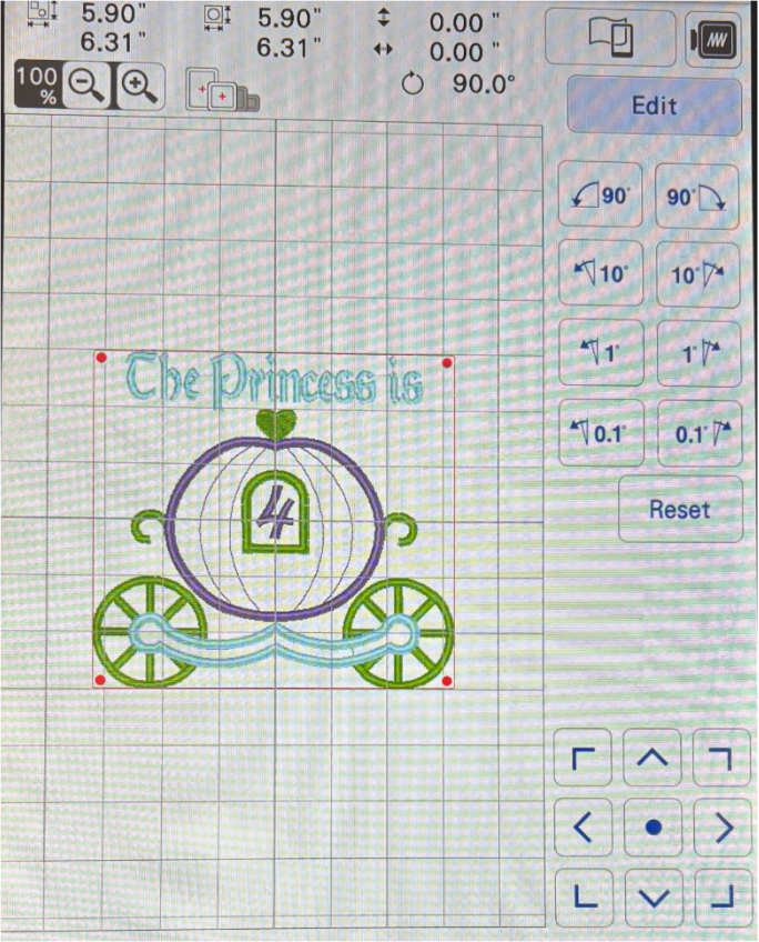 Using the Stitch Forward key, forward the design to Party Like a Princess.