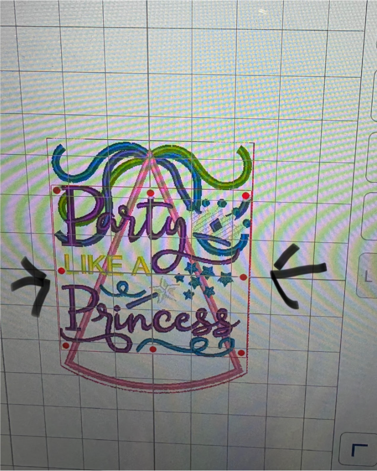 Next, load the Party Like a Princess design that will fit your bag. You will want the sides of the design to fit within the sides of the bag. Center the design.