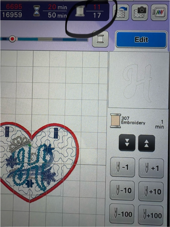 Using the Stitch Forward keys, advance the design to the letter. I am only stitching the letter and the crown, so I will start there.