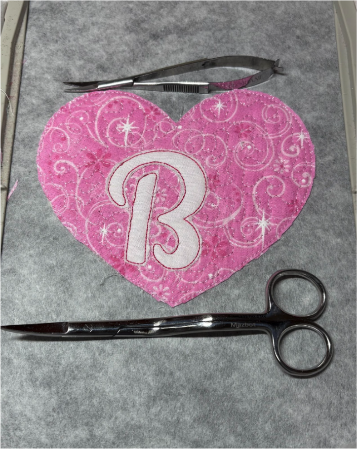 Trim the fabric around the letter. Using applique scissors and snips will help.