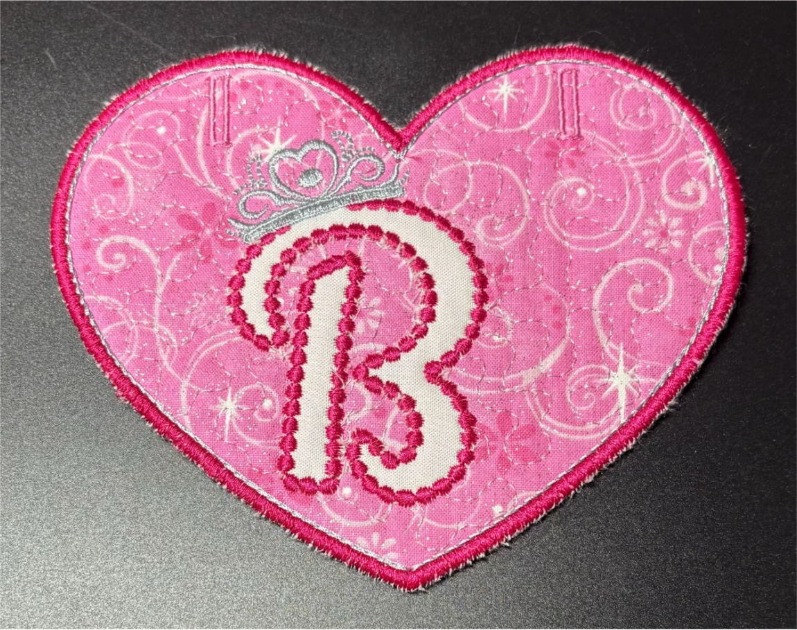 Center the letter inside your banner shape. I am only stitching out the letter and crown so I am not concerned if the entire design fits. If you are stitching out the entire letter design ensure it all fits into your banner shape.