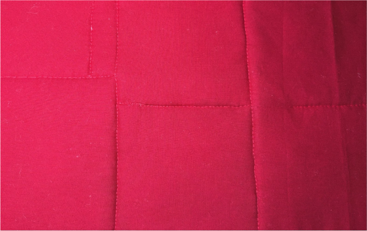 If you added extra batting, stitch in the ditch at the sides of the blocks to keep the batting from bunching.