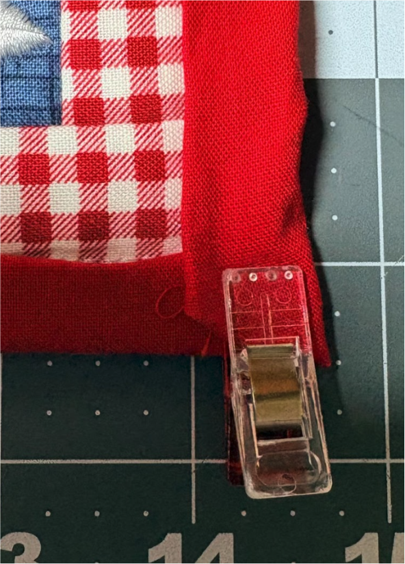 Center your placemat onto the backing fabric, then fold the edges up and over to the front.