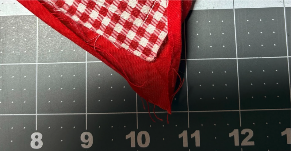 Trim the fabric close to the stitches, leaving ½” or more on the left side and bottom.