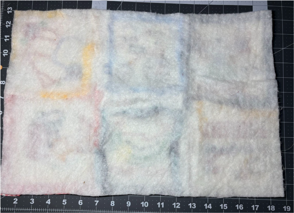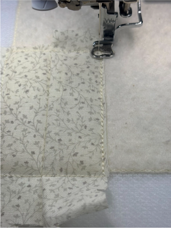 Take to the sewing machine and sew between the batting and fabric stitch lines.