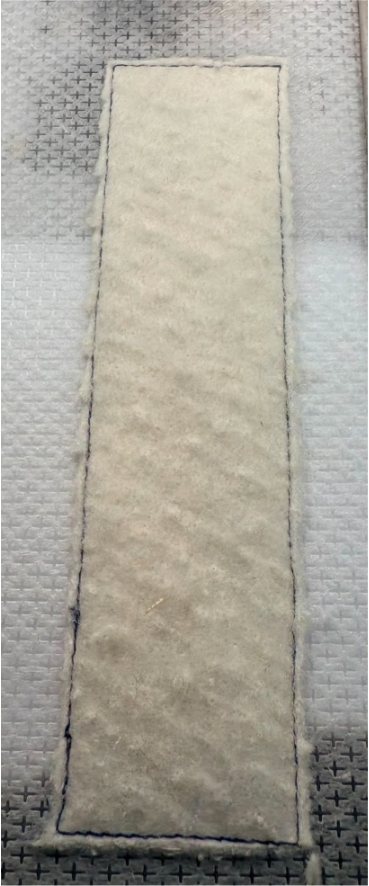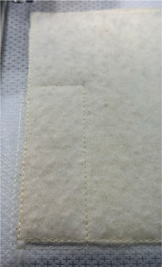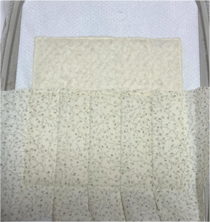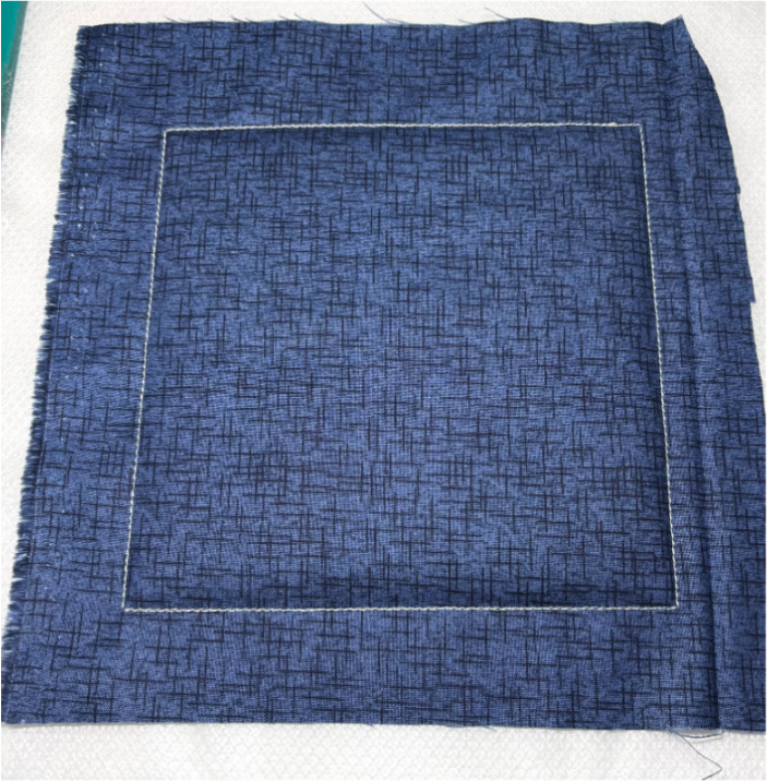 Then place your fabric over the batting and stitch the rectangle one more time.