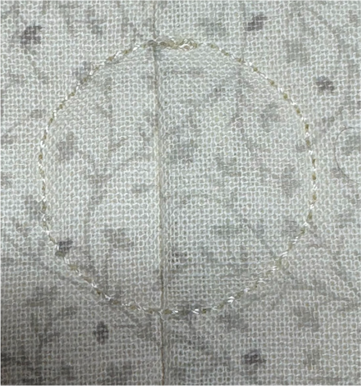 Ensure the applique fabric always covers all the stitches.