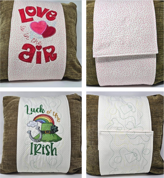 If you love decorating for holidays and seasons but don’t love finding space to store it all, this project is for you. A double-sided pillow wrap is a fun, practical way to dress up your home for more than one occasion—just flip the wrap to change the look. In this tutorial, I’ll show you how to create an easy quilted pillow wrap with embroidery on both sides, giving you seasonal style that looks great on display and folds flat when it’s time to tuck it away.