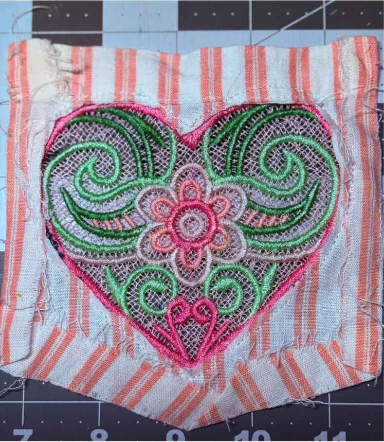 First, pick the freestanding lace design you want to use and load it onto your machine. This design is from Free Standing Lace Hearts 3.