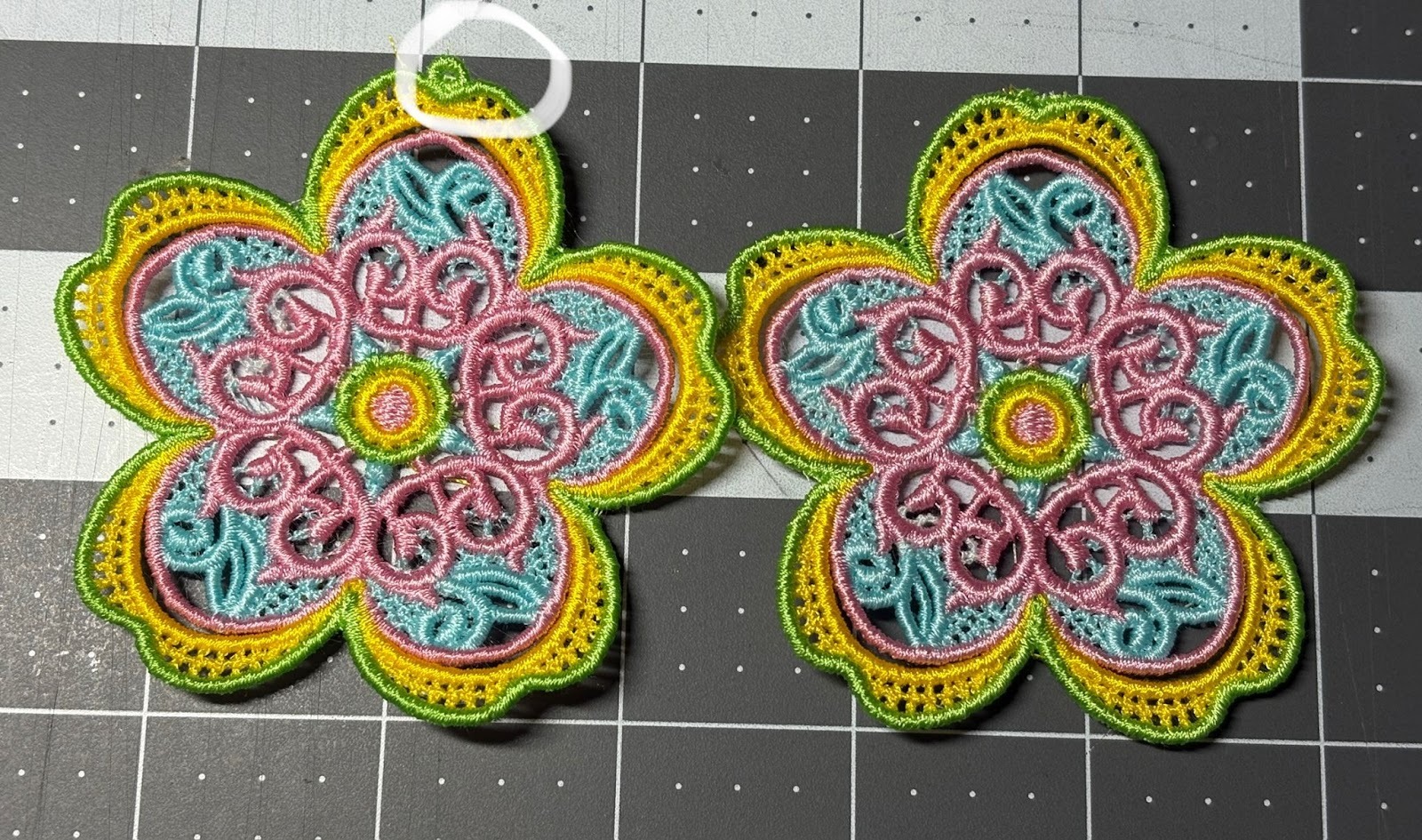 Hoop two layers of wash-away stabilizer and embroider the design.