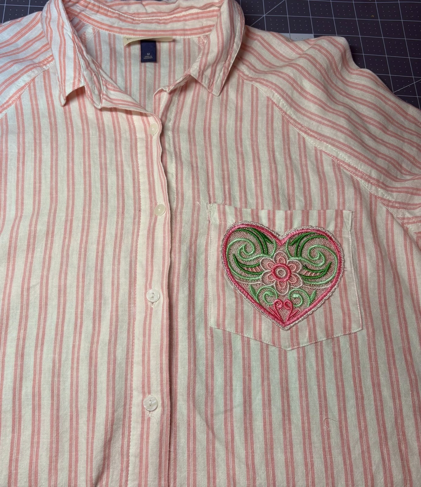 If you have a shirt that looks worn out, you can update the pocket for a fun refresh.