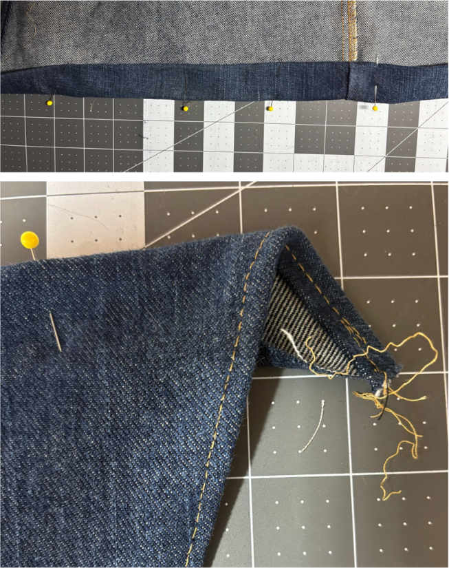 We’re creating a modified French seam for a clean, durable finish.