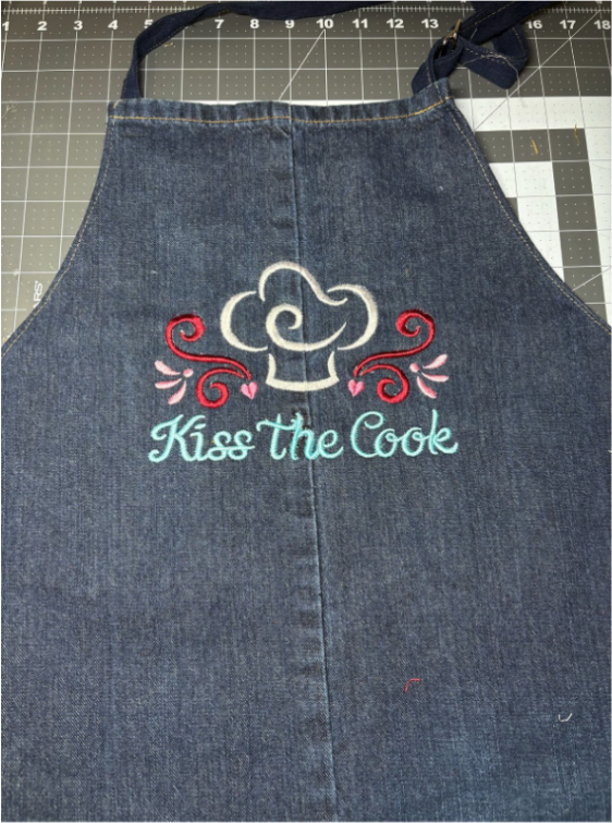 Choose the embroidery design and size that fits your apron. I used this cute saying from Fun Kitchen Swirls.