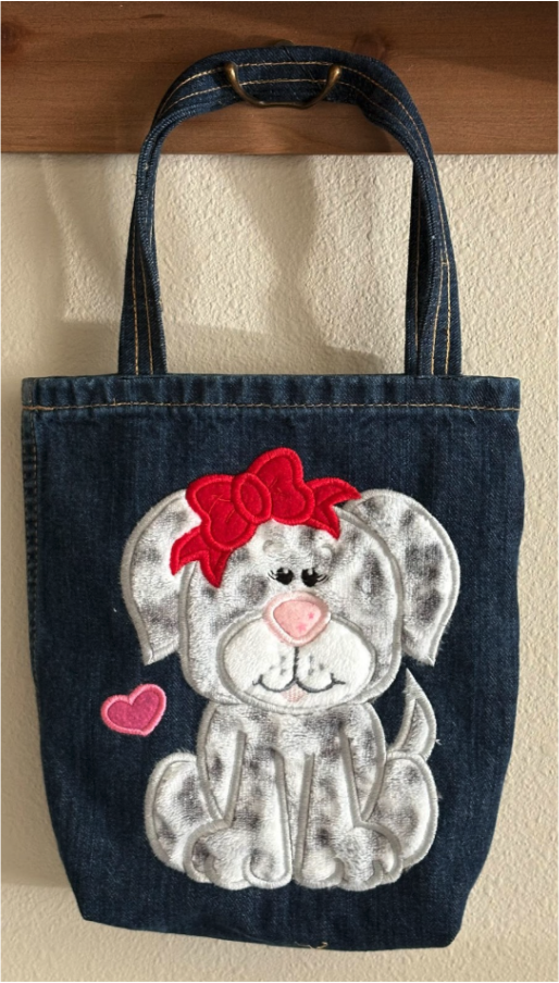 Choose the design you want for the front of the bag and load it into your machine. I am using Puppy Girl Applique in the 7.80” x 6.00” size.