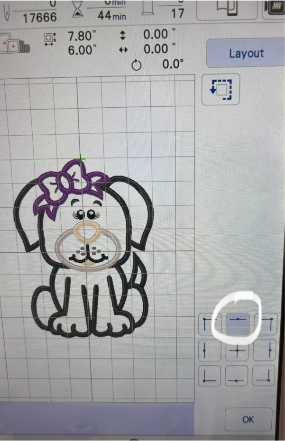 Return the hoop to the machine. Use your Placement keys to be sure the design fits in the area.