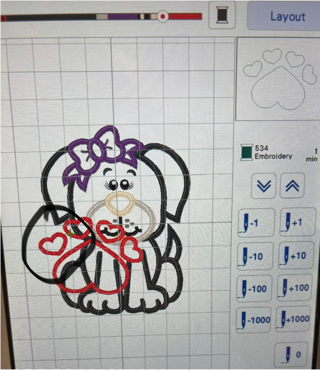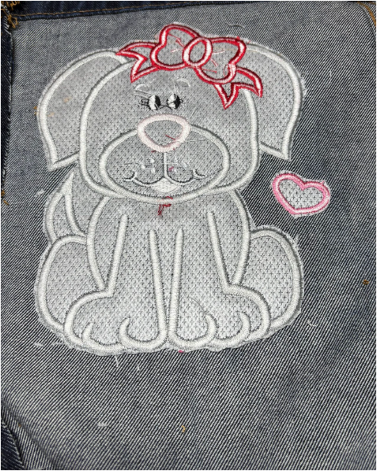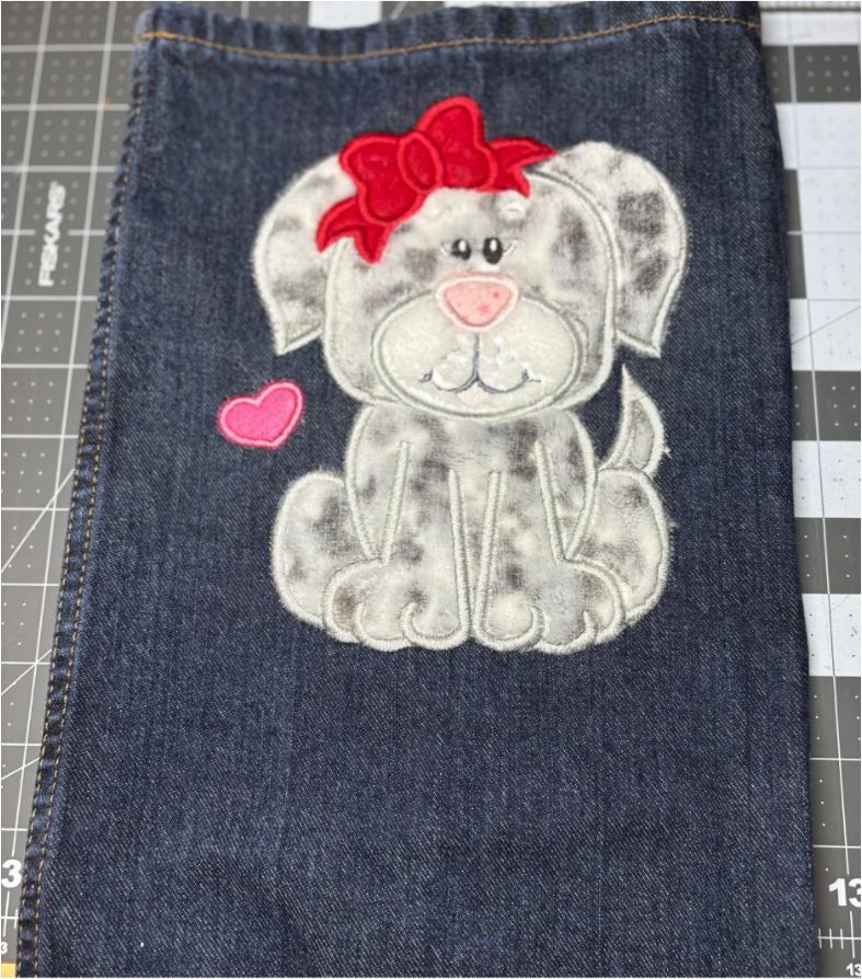If you’d like to add more designs in the same hooping, go for it! I added a small heart from Heart Paw Applique to complement the puppy. It’s fun to experiment using multiple designs.