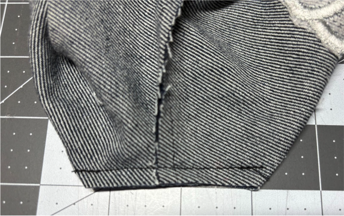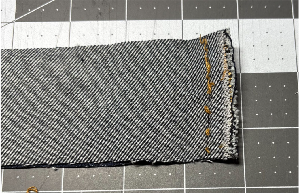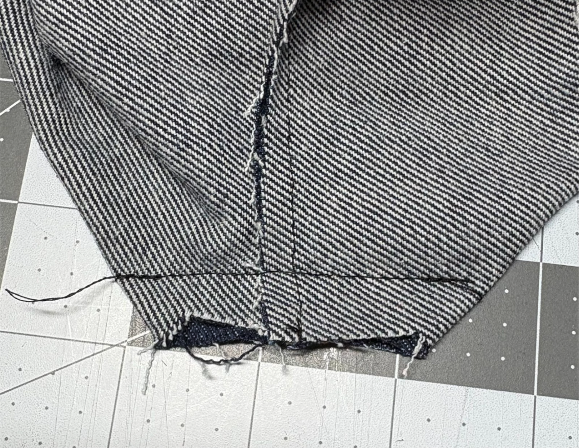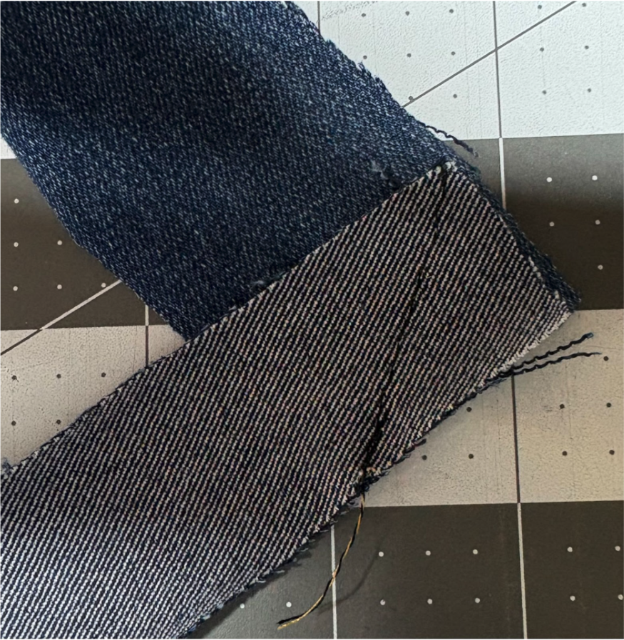 Because you’ll be stitching over a bulky denim seam, use a denim needle or a 100/16 for best results.