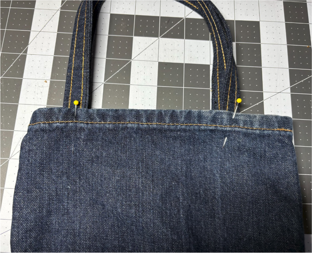 Repeat on the back of the bag with the second strap. Double-check that straps are even before sewing.