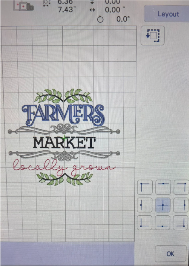 Reattach the hoop to your machine and use the placement keys to confirm the design fits neatly inside the pocket. Check top, bottom, left, and right.