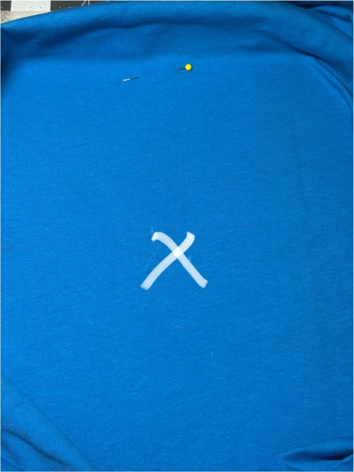 Turn the shirt right side out and mark the center with an erasable marker.