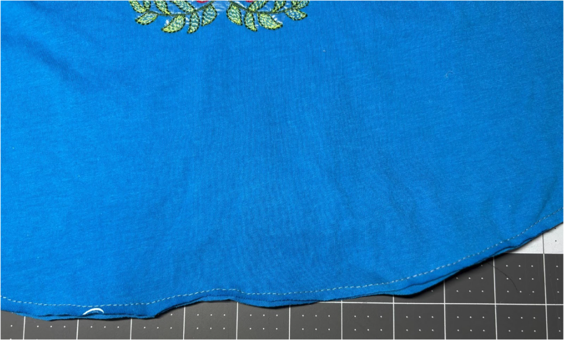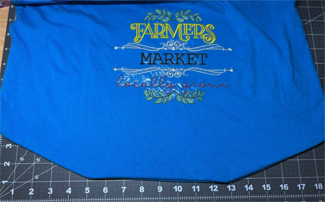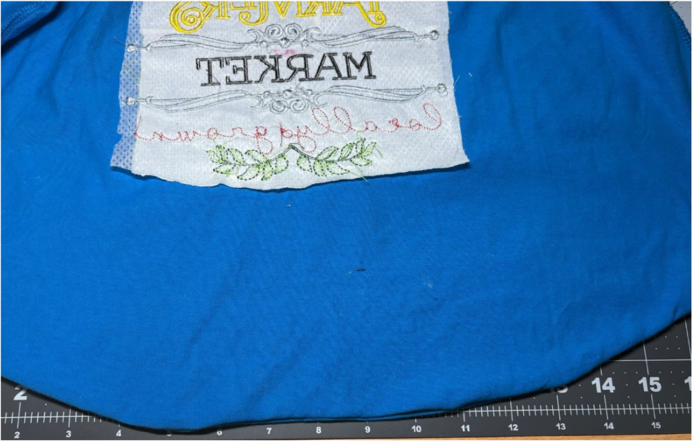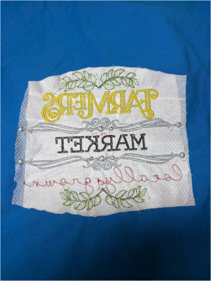 Embroider, then remove the hoop and detach the shirt. Trim the stabilizer.